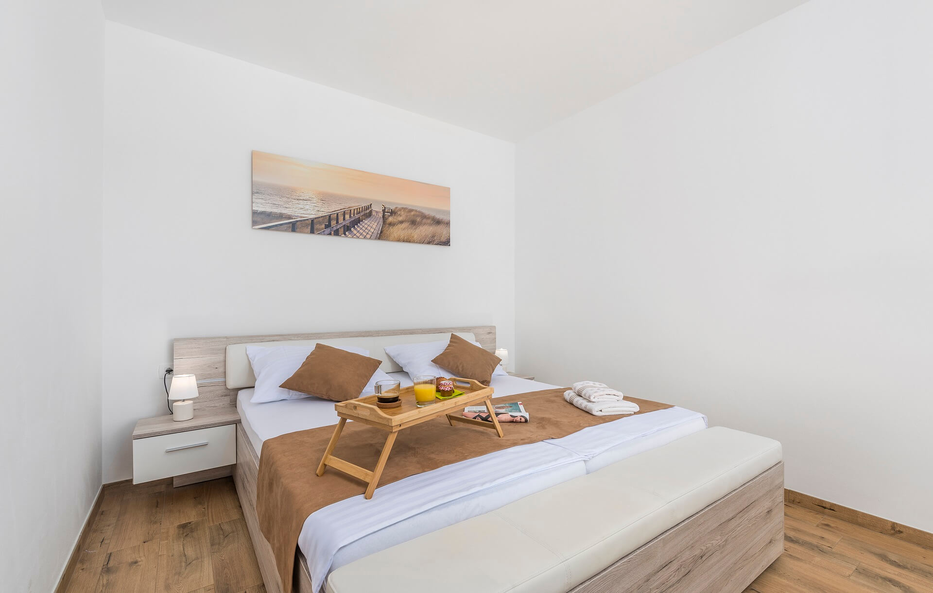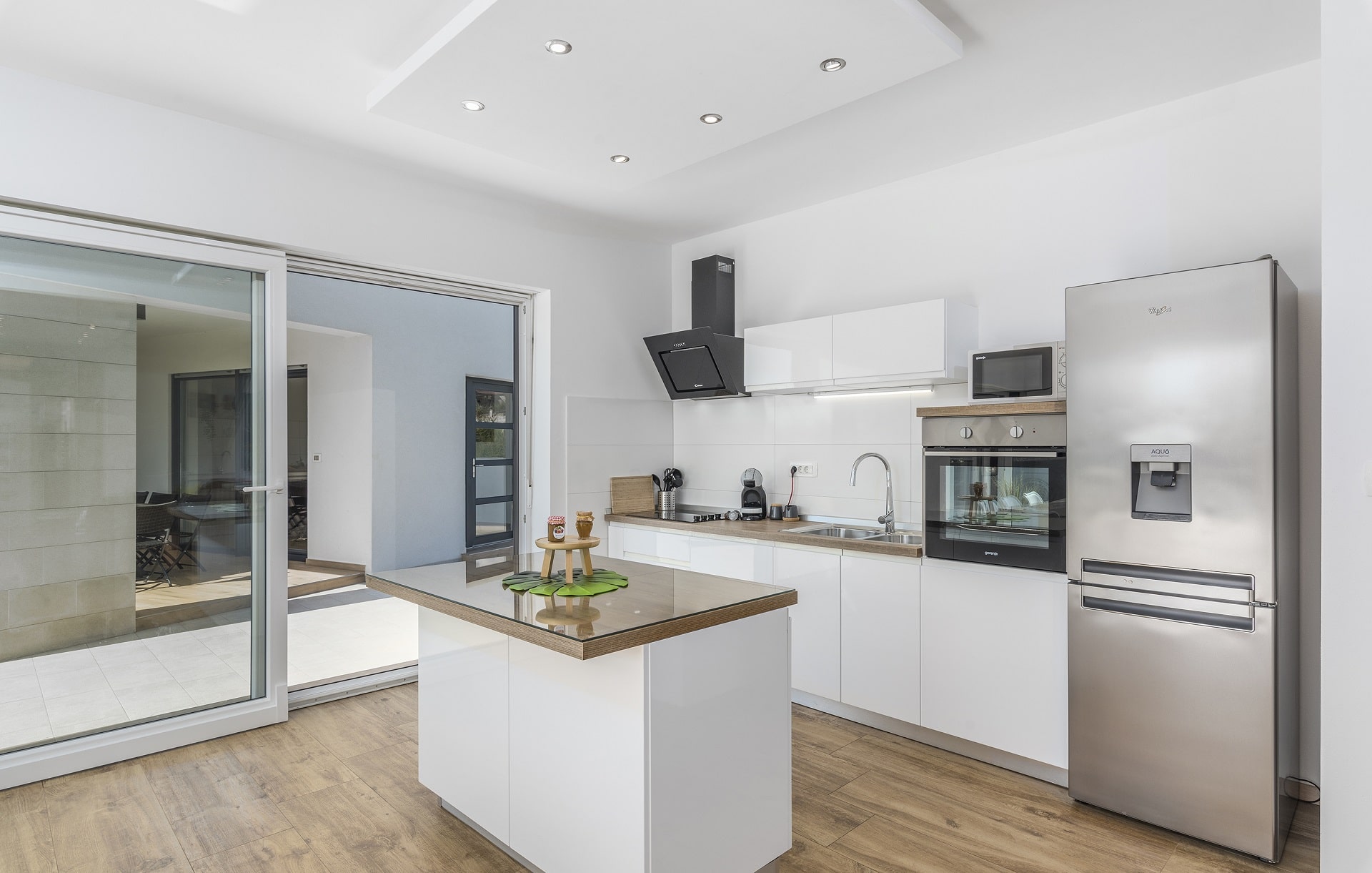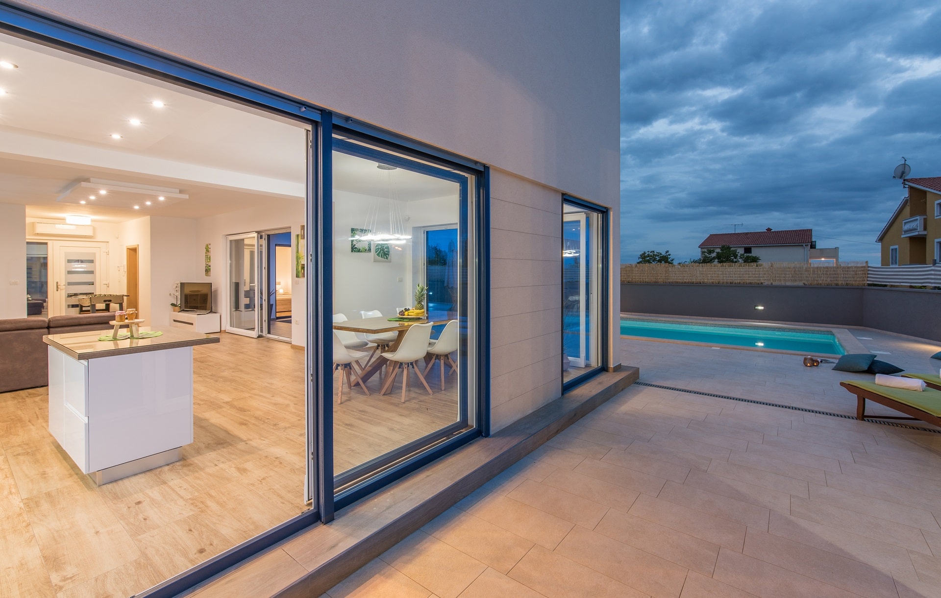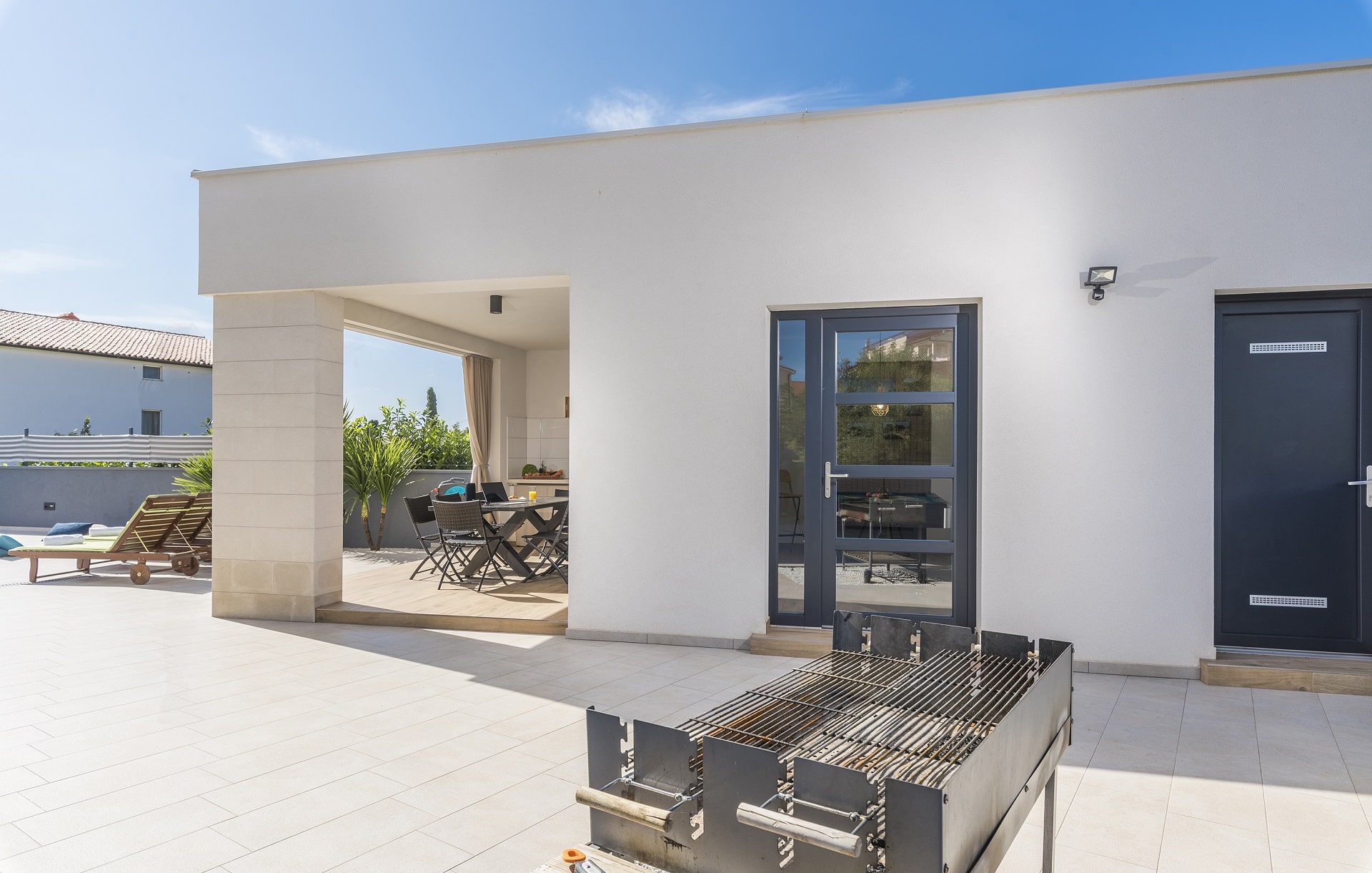 Die Villa OL&JU bietet Platz bis zu 7+2 Gästen. In ihren 3 luxuriösen Schlafzimmern, die alle klimatisiert sind und über einen eigenen Fernseher verfügen. Im ersten Stock befinden sich ein grosses Badezimmer und zwei komfortable Schlafzimmer (Zwei- und Dreibettzimmer). Im Erdgeschoss der Villa befindet sich eine voll ausgestattete offene Küche, ein grossflächiges Wohnzimmer, ein Schlafzimmer mit eigenem Badezimmer und eine Gästetoilette. Vom Wohnzimmer aus betreten Sie eine geräumige Terrasse mit Blick auf den grossen Pool.